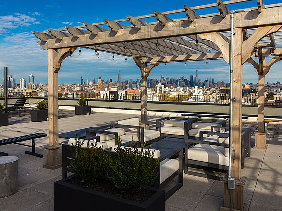 LARGEST PRIVATE TERRACE IN THE BLDG ,VIEWS OF MANHATTAN & YOUR OWN GRILL! ! life Grand in this amazing 2 Bedroom 2 Bath stunner. The custom kitchen features Caesar stone countertops, modern stainless-steel appliance package, full-sized dishwasher, herringbone white ceramic tile backsplash, oil rubbed bronze faucet, Kohler sink and soft-close cabinets. The spa-like bathrooms are outfitted with a deep walnut vanity, Caesar stone backsplash, Moen faucets with Kohler sinks and toilets, and white herringbone ceramic tile walls. Each room has individually controlled digital thermostats and soundproof windows and a washer/dryer int he apt. Amenities offer the utmost in convenience: fully-furnished roof deck with two grilling stations, wet bars, private dining stations, lounge chairs and outdoor shower; resident fitness center; workspace lobby lounge with free WiFi; Butterfly MX Security and Intercom system; green backyard garden; private storage cages, parking garage and bike storage available. . Pets under 50 lbs and guarantors are welcome. Some restrictions apply. Pictures depict typical finishes in the building and might not be of actual unit. Offer for immediate occupancy & is subject to change.
