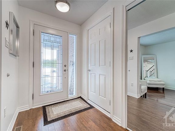 Stunning single family home located on a rarely offered 130' deep lot backing NCC forest & the Ottawa river. No detail overlooked. Inviting sunken living rm with gorgeous hardwd. The custom kitchen will surely impress any chef with sleek white cabinetry. Island breakfast bar seating & S/S quality appliances complete this space. The elevated deck with retractable awning provides access to your very own "tree house". 2nd level with principal rms all in hardwd. The master bedrm is an adult retreat featuring double closets, & a lux 3-pce ensuite bath. Fully finished walkout lower level you will find an immense family rm with gas f/p & walkout access to the yard. Newer roof, windows & furnace. The double driveway accommodates 4 cars. The rear yard distinguishes this home as something special & rarely offered. Located on a tranquil lot backing on ravine, this home offers access out your back door to miles of trails for biking, walking, & skiing. No conveyance of offers until March 8 @ 4pm