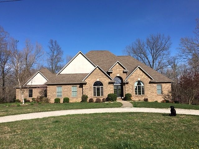 Custom designed and built, builder owned home nestled on 10 beautiful, rolling acres. From the moment you walk through the front door, you notice grand timber trusses and three stories of grand windows overlooking a gorgeous back yard. So many unique features to this one of a kind home. This home was built for entertaining with it's large eat in kitchen and fully finished basement. Talk about room....the master bedroom alone is 325 sq ft! The master bath has recently been updated and wow!! is it beautiful! It's spa like garden soaking tub big enough for two, double bowl sinks, makeup vanity, and glass walk in shower with rain head. This home also features a separate en-suite that could be used as a mother-in-law's suite. In total, 5 bedrooms, 3 full baths. Now let's talk about the outside.....two beautiful concrete patios constructed so you can enjoy morning sun on either. This home is situated perfectly on 10 gorgeous acres so close to everything. A little piece of heaven just 30 miles south of Louisville.