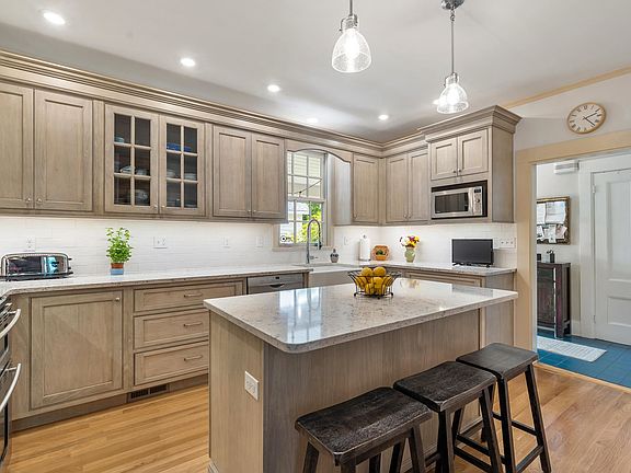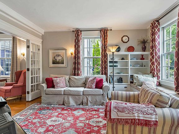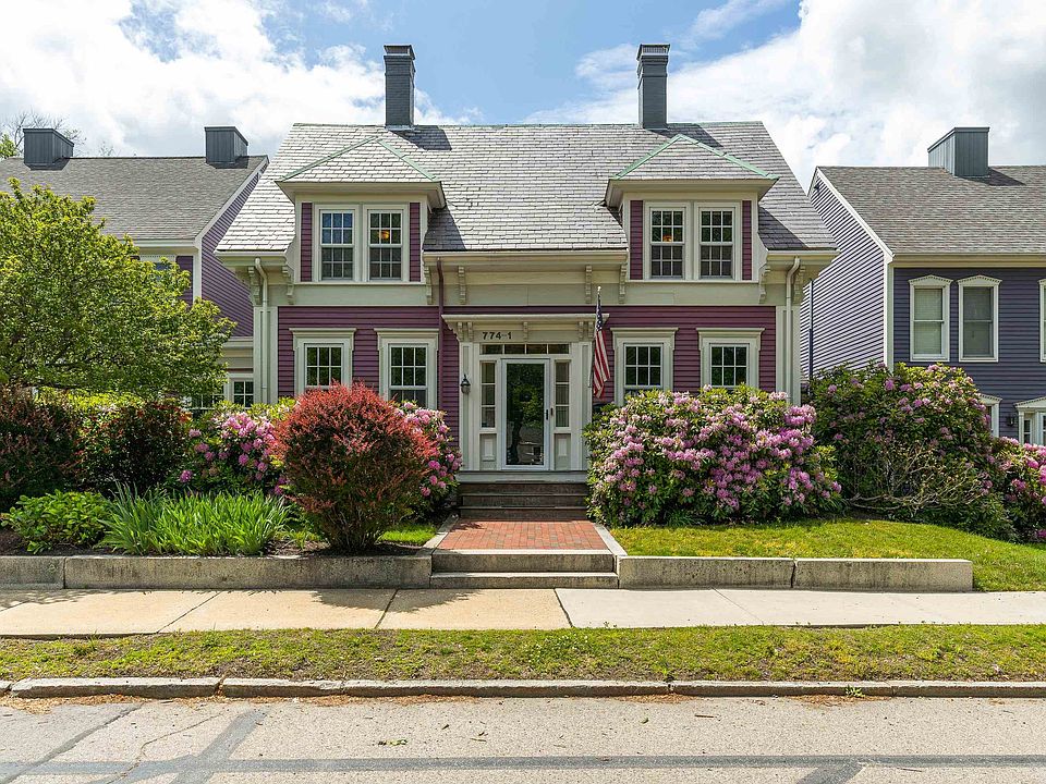 This 1890 Victorian cape is a fine gem situated in the historic district of Portsmouth. This gracious 2000 SF, 3 bedroom, 3 bath, single family home was converted into one of a 4-unit condo association in the mid-80’s and features an elegant main foyer that leads to the living room filled w/ natural light, built-in window seat and shelves providing ample storage along with French doors that can close off the back half of the room for an office, den, or music room. The well appointed chefs kitchen, designed and renovated by CabineTree from wood floor to ceiling includes a fully vented hood, quartz countertops, farmers sink, and soft close dovetail cabinetry. Several original features to the home include a decorative late Victorian fireplace, chandelier, chair rail moulding, and built-in china cabinet in the formal dining room. A half bath & mud room area with ample closet storage are situated at the rear entrance. 2nd floor primary suite features Indow Windows installed for noise reduction and energy efficiency, a spacious walk-in closet, second closet, a double vanity in the primary bath with radiant heated tile floor and a laundry area with stackable washer/dryer. Another 2nd floor full bath serves for two additional bedrooms. Dine al fresco on the private patio & end the day with a relaxing soak in the hot tub on deck. Walk or ride to downtown, parks, schools, and other amenities. Come explore this antique beauty and all that Portsmouth has to offer.