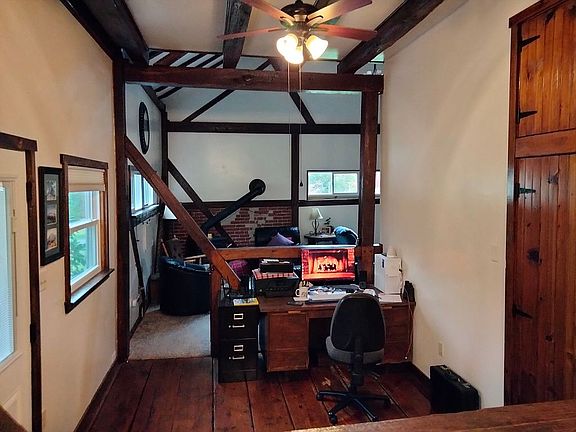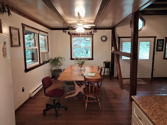 Original timber frame barn, added on to and finished. NEW Pella windows throughout. Ground level walk-out: large living/hospitality area, 1 bedroom, 1 bath, Laundry, Utility, Mud room. Main level: Master bedroom & 3/4 bath, Kitchen w/ NEW cabinets, Dining, Living room, Office. Spiral staircase to loft/3rd bedroom. 30x40 3-bay insulated shop, with power + 40x20' lean-to. Chicken house, small pond in partially fenced pasture. Fire ring in grove of maple trees. 20.7 kw grid-tied solar installed on shop roof. Sold separately. walk-out basement still needs some finishing touches on ceiling & floor