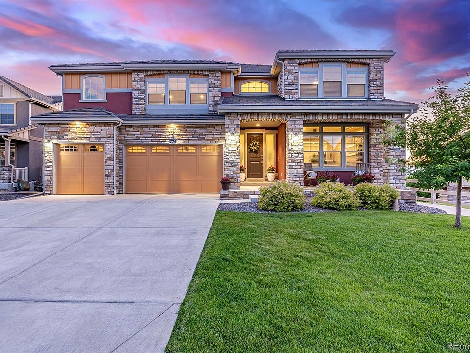 **Open House Cancelled** Tucked away on a tranquil cul-de-sac, this exceptional home offers a rare opportunity to experience elevated living with panoramic views of Colorado’s majestic Front Range. From the moment you arrive, you'll be captivated by the setting which is simply serene, scenic and spectacular. Inside, the home is equally impressive, blending timeless elegance with thoughtful functionality. The main level showcases a custom-designed chefs' kitchen complete with ceiling-height cabinetry, a spacious center island, double gas ranges, double refrigerators, pantry and designer finishes. The adjacent great room is warm and inviting, featuring a stylish fireplace and a wall of west-facing windows that bathe the space in golden afternoon light—ideal for cozy evenings and spectacular sunsets. Also on the main floor, a private bedroom with stunning views is ideally located near a beautifully appointed full bath and a laundry room—making it an ideal guest suite, Au pair quarters, or in-law retreat. The main level is rounded out with a formal dining room for elegant entertaining and a welcoming front living room for everyday relaxation. Upstairs, you’ll find three additional bedrooms—each with its own walk-in closet and a spacious family room. The crown jewel is the luxurious Primary Suite, where tray ceilings and expansive mountain views from the outdoor balcony create a peaceful haven. The spa-inspired en-suite bathroom offers the ultimate in comfort and style, with a dual-entry rainfall shower and soaking tub. The fully finished walk-out basement extends the living space with a large recreation room, guest bedroom with an oversized walk-in closet and a full bathroom. Walk out to your professionally landscaped backyard backing to open space and take in the sweeping vistas that stretch to the horizon. Located in the desirable Erie Highlands community, you'll enjoy exclusive access to resort-style amenities including a community pool and clubhouse.