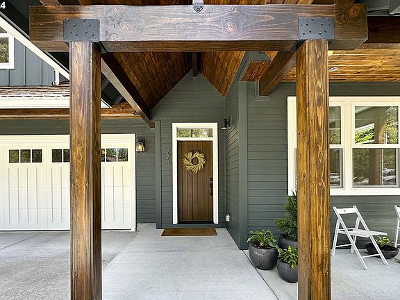 Nestled in a serene neighborhood adorned with majestic trees, this inviting and airy sanctuary is waiting to welcome you home. This cozy retreat boasts beauty, natural surroundings and the comfort of modern living. With rooms flooded with natural light, a gourmet kitchen perfect for culinary adventures, and inviting living spaces ideal for relaxation and entertainment, every corner of this home exudes warmth and hospitality. From solid spruce beams to the cedar lined outdoor overhangs, perfection abounds throughout. Enjoy custom cabinetry, custom shiplap, solid hardwood floors, and open beamed ceilings. At the heart of the home is the exquisite kitchen with generous counter space for meal preparation and entertaining. Large apron sink for heavy-duty cleaning needs and a second sink that adds both functionality and elegance. Premium appliances not only enhance the kitchen's functionality but also add a touch of modern elegance, ensuring that your culinary space is beautiful and efficient. The primary bedroom is the personal oasis you have been longing for. With vaulted ceilings, ceiling fan, walk-in closet, a second closet, and french doors that lead to your private balcony, it is the perfect space to unwind. Primary bath meets all of your personal needs with quartz countertop, marble tile shower, and heated floors. Heated floors are also in the second upstairs bathroom. Home is wired for security system. This home offers the perfect blend of privacy and convenience. With easy access to amenities, parks and schools, it's the epitome of suburban living at its finest.