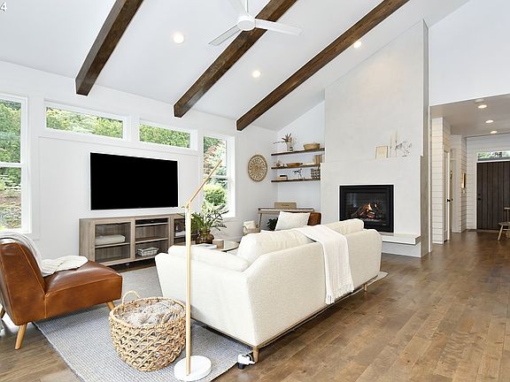 • Features: Beamed Ceilings, Ceiling Fan, Fireplace, Hardwood Floors, Patio, Sliding Doors, Vaulted Ceiling