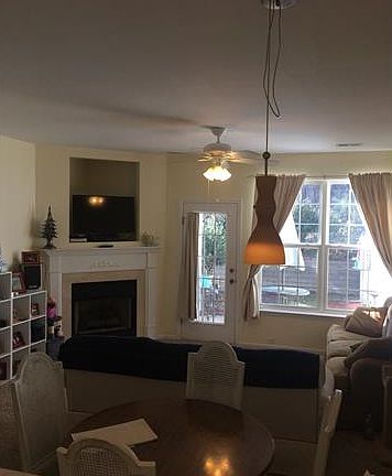 Adorable townhouse in GREAT location. Low taxes, great schools and close proximity to shopping, restaurants and interstates. Open floorplan with kitchen looking into living room with gas log fireplace. Private backyard with outside storage. Large kitchen pantry. Both bedrooms offer walk in closets. Community features include pool and playground.