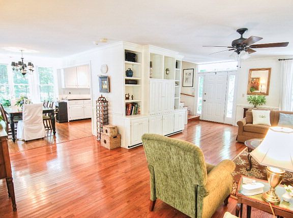 Qualifies 100% financing 2.46 Acres all brick 3bdrms 2.5ba plus bonus room w/nice gated entrance located on quiet creek surrounded by nature!This rocking chair front porch beauty is energy efficient at $144 a month&move in ready w/almost all new dbl pane windows, tankless hot water heater, insulated interior&exterior walls!Open floor plan w/beautiful living rm w/gas starter wood burning fireplace, huge sunroom, dining rm w/window seat&kitchen w/corian counter top&backsplash, frig that stays, new oven, gas stove w/downdraft&nice built in pantry!Owners suite w/dble sink vanity, ceramic tile floor&lg shower plus 2 closets!Guest rm w/desk, built in cabinets&bench seat plus spare bath w/lg linen closet&water closet!3rd bedroom furniture can stay!Laundry area w/lots of cabinets&folding space!Crown molding, chair rail, whole house attic fan, full sprinkler system, storage bldg, lg deck, awesome fire pit plus concrete pad poured&ready to build a large garage!Add'l guest parking spaces!