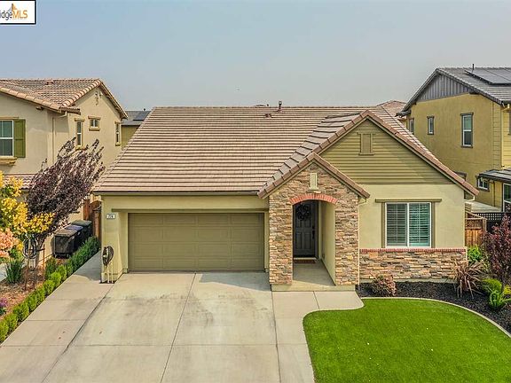 Gorgeous open floor plan single story home in Oakley for sale; the perfect starter home for a growing family or a family that is looking to downsize, but keep all the luxuries. This home is jam-packed with upgrades in the garage like textured walls, epoxy floors, and additional overhead lighting. Other upgrades throughout the home include 18" square tile flooring throughout, shutters, half bath remodel, guest room closet shelving, three new ceiling fans, pet rated carpet, and pendant lighting/ chandelier. But wait.. there is MORE! Additional upgrades outside such as the extended driveway, front/back landscaping, and backyard string lighting; perfect for entertaining. Kitchen with stainless steel GE appliances, granite countertops, deep kitchen sink, island with barstool seating, breakfast bar, and eat-in kitchen area under pendant lighting paired with a massive family room combo with built-in ceiling speakers. The main suite includes upgraded carpet, ceiling fans, and the main bathroom