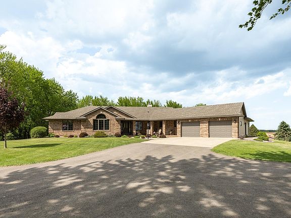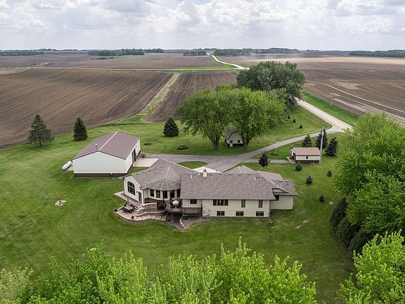 Welcome to your dream home—a truly stunning 5-bedroom, 4-bath ranch-style retreat set on over 10 peaceful acres! With more than 5,000 square feet of living space and countless major updates already completed, this home is the perfect blend of luxury, comfort, and practicality. Step inside to discover sun-filled rooms where the heart of the home is a spacious and inviting kitchen, ideal for entertaining or enjoying quiet evenings with family. The main floor features bright and airy living spaces, a generous primary suite with a private bath and walk-in closet, and brand-new carpeting (2025). The walk-out lower level offers three additional bedrooms, newer carpet (2023), and plenty of room to relax or host guests. Enjoy luxurious in-floor heating in many areas of the home—keeping things warm and energy-efficient year-round. Major updates include: Roof (2022), Furnace & A/C in first unit (2022), Washer & Dryer (2023) Blacktop driveway (2023), Kitchen appliances (2024), Culligan reverse osmosis system (2024), Water softener (2025). Outside, unwind or entertain on the expansive maintenance-free deck or the paver patio, both overlooking the scenic acreage—perfect for morning coffee or sunset gatherings. Storage and hobby space abound with an attached garage and three outbuildings, including a massive 40x60 heated and insulated shop—ideal for your toys, tools, or business needs. Also, enjoy the pastures and great hunting behind the grove. Whether you're seeking a serene country escape or a home with room to grow, this property is ready for you to move right in and make it your own.