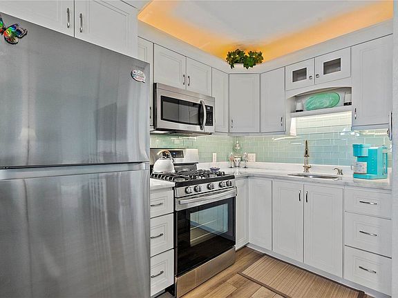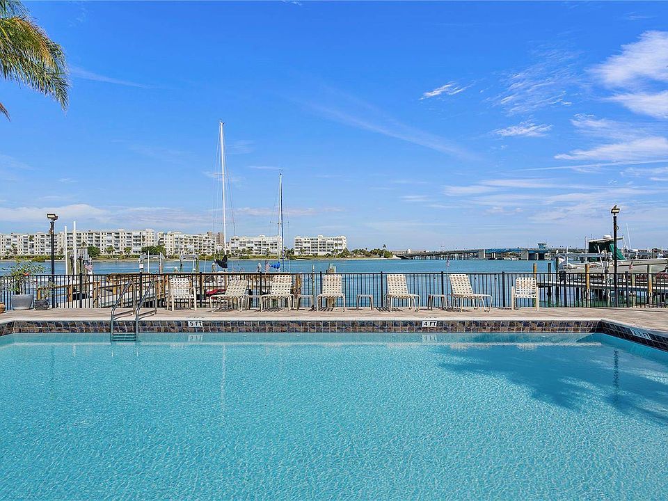 Welcome to your dream coastal retreat! Located in the heart of all the action, this meticulously remodeled condo is a true gem. Enjoying a prime location on Boca Ciega Bay just minutes from the beach vibes of St. Pete Beach and a quick jaunt to Downtown St. Petersburg, this turnkey unit offers convenience and style. Step inside to discover a thoughtfully designed kitchen featuring custom cabinetry, adorned with exquisite marble countertops, and equipped with a full-sized gas range. The elegant overhead cabinets are tastefully accented with ambient lighting both above and below, creating a warm and inviting atmosphere. The attractive and durable flooring flows seamlessly into the cozy bedroom, providing a cohesive and aesthetically pleasing living space. Stay comfortably cool with the new mini-split system that ensures optimal temperature control while being energy-efficient. The recently remodeled bathroom adds a touch of luxury to your daily routine. Across the street, you'll find the HOA-owned shuffleboard, a refreshing waterfront pool, and a fishing/mooring dock with both shared and deeded slips, offering endless opportunities for outdoor enjoyment. Adjacent to these amenities is the St. Pete Beach Recreation Center, where you can engage in a variety of arts, activities, and maintain your fitness at the onsite Fitness Center for just one dollar a day or $10 a month. For your shopping and dining pleasures, Corey Avenue is a mere quarter mile away, featuring charming shops, enticing restaurants, and the popular Sunday Market. Whether you're seeking a delightful turnkey second home or a savvy investment (with a one-month minimum rental), this condo checks all the boxes.