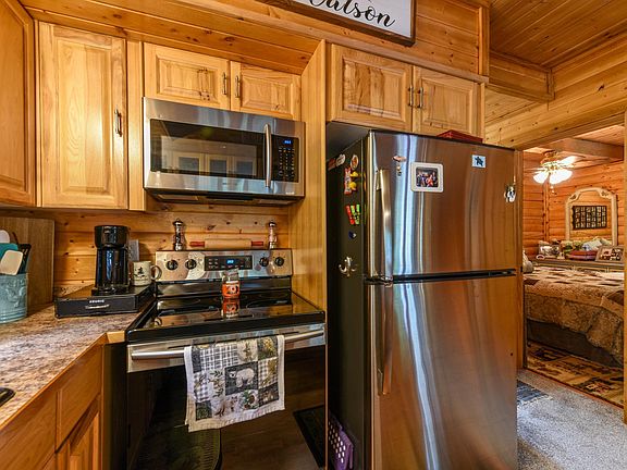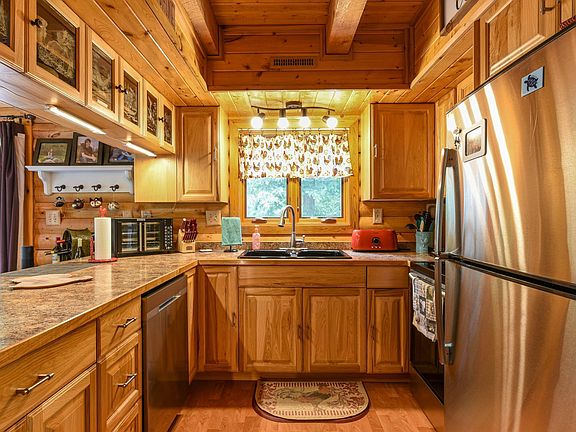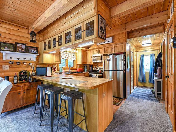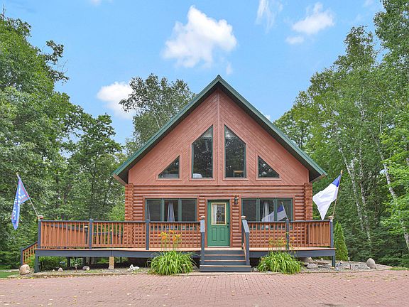 Must see up north 3 bedroom and 3 bath home on private wooded 1.4 acres. Features include knotty pine interior, beamed ceilings, new stainless appliances, custom cabinetry, huge deck, new carpet, pavered driveway, storage shed, insulated & finished garage and much more!