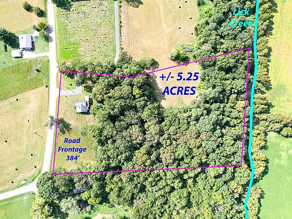 3BR/1BA cottage on 5.25 acres with a huge creek at the back! All the most wanted elements are here awaiting your personal touch and design to make it your own. The house has a metal roof, heat pump, covered side porch, and detached 2 car garage/carport with storage area. Inside features include the original hardwood flooring, laundry room, kitchen with updated laminate countertops, hardwood cabinets painted white, built in open shelving. The living area is large and flows into 2 sections. Full bath and unfinished basement. The land features both wooded and cleared areas and the section of Lick Creek flowing through at the back of the property is wide and strong flowing. Home is not in a flood zone, only a small section at the back surrounding the creek. Schedule you're showing and bring your ideas and dreams!