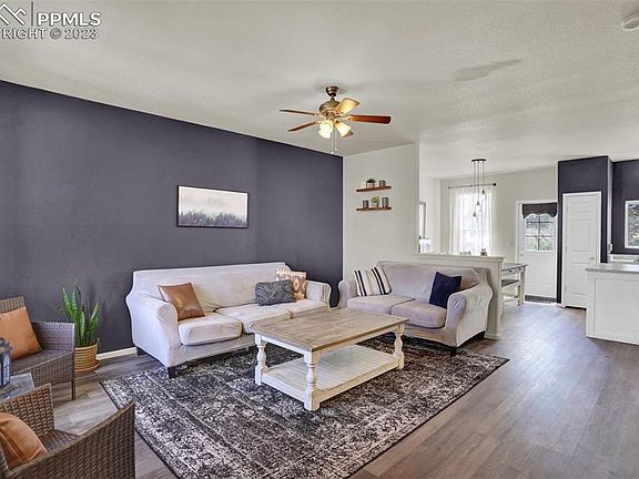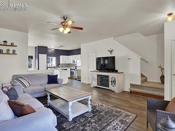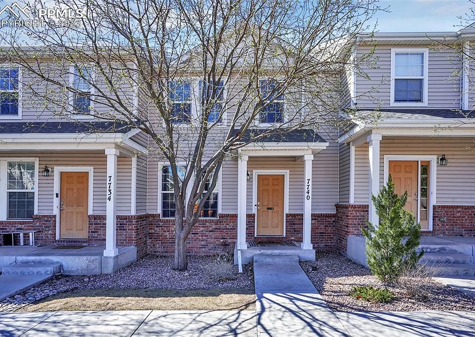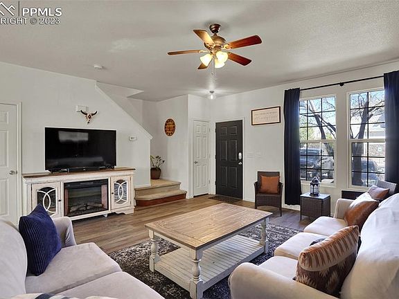 Quaint and welcoming Fountain townhome close to everything! Many updates throughout this property! Enter thru the covered front porch and the first thing you notice is the new laminate flooring and updated light fixtures throughout the main level. The open floor plan extends to the dedicated dining area and kitchen with new countertops, sink, and back splash. Extending from the dining area is access to the back of the property, which benefits from no neighbors directly behind and a relaxing open space and trail system. To add to the convenience, a powder room is located on the main level as well. The upper level hosts both bedrooms, each with their own updated private baths. Additionally, the laundry is located upstairs and placed nicely between both sleeping areas. Located near Ft. Carson and Peterson SFB, and walking distance to shopping, dining, and many other amenities. The park across the street offers a playground, BMX track, Soccer field, and picnic tables! Come see this beautiful property!