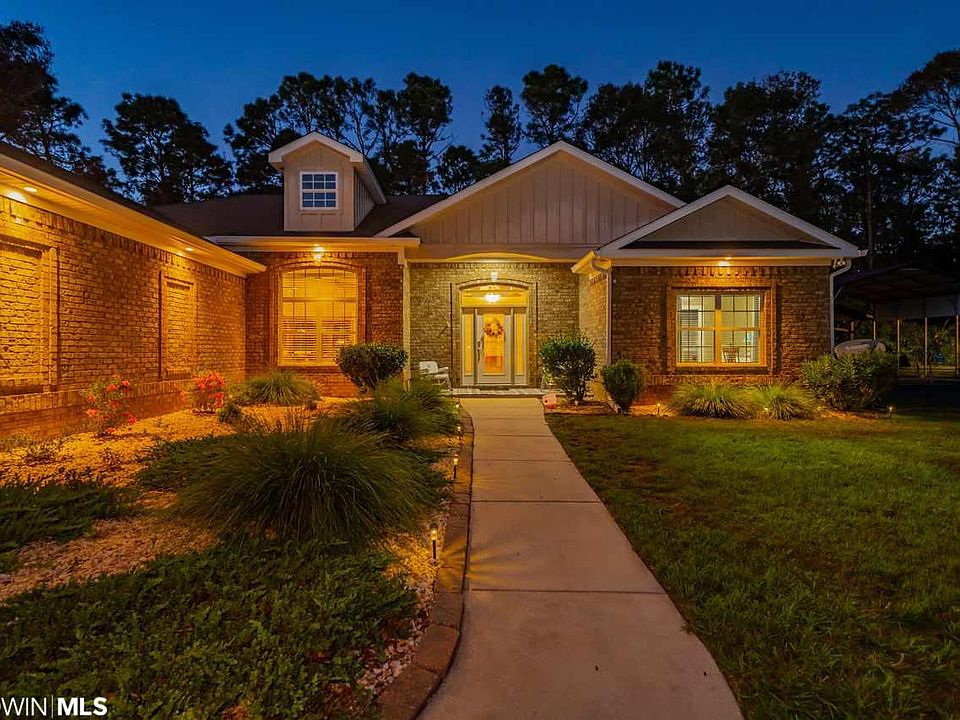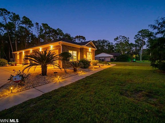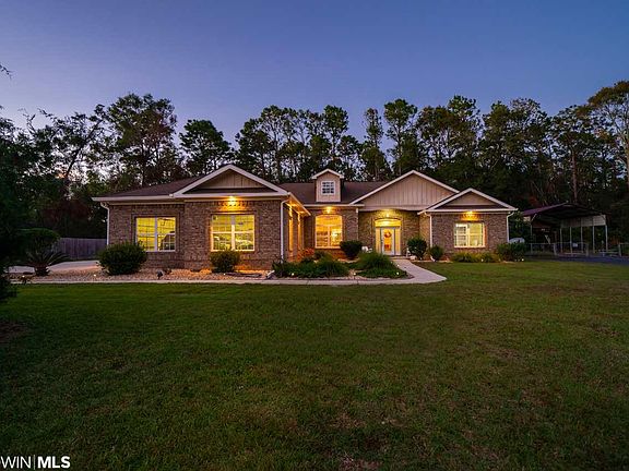 **HIGH & DRY! - NO SALLY DAMAGE! **Live the COASTAL and COUNTRY LIFE! Simply Beautiful and Immaculate Custom Brick Home Nestled on Stunning Half Acre Lot with NO HOA, and only 10 minutes to BEACHES and HEART OF FOLEY. This CUSTOM beauty offers true PRIDE OF OWNERSHIP and LACKS NOTHING including a 3 car garage and RV/Boat Barn. Offering three full bedrooms plus a BONUS ROOM currently used as office/study. You will ENJOY GATHERING around the STACKED STONE FIREPLACE and gorgeous 11 foot ceilings in the LIVING AREA with 5 STACK CROWN MOLDING. Gourmet kitchen BOAST CUSTOM HICKORY CABINETS and TOP OF THE LINE APPLIANCES. Wonderful flow from living/kitchen/dining room into STUNNING PATIO and BACKYARD. GIGANTIC MASTER will spoil you plenty of room for seating area. Flawless master bath with hickory cabinets, soaker tub, and double shower! Master also access patio to enjoy those morning cups of coffee. Split floor plan enjoys privacy with two spacious bedrooms sharing a Jack and Jill bath. Tons of EXTRAS include fresh interior paint, upgraded tile plank in master, and newer HVAC. Exterior features including an amazing backyard with brand new slip style fence with aluminum framing for low maintenance ($11k value). Perfect place to relax with friends with a firepit and covered porch for lounging. Enjoy citrus trees and a gorgeous place to garden. Bring your TOYS and PARK UNDER THE RV PORT (18' x 41' x 16' w/ 30 AMP service ) - perfect for the large boat or RV. This home HAS IT ALL. Do not DELAY! Come take a private tour.