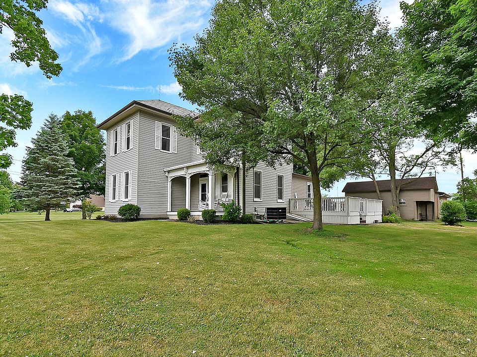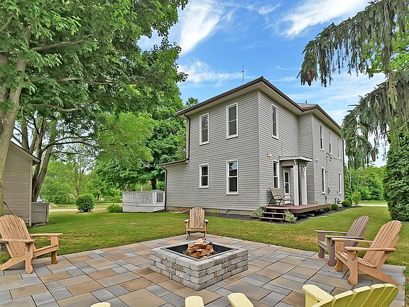 Outstanding restored Farmhouse offers original character with modern upgrades. Gorgeous woodwork throughout. Covered front porch offers Southern Exposure. Large deck. New backyard patio with built-in fire pit. 10ft. smooth ceilings on first flr. 9' ft. ceilings on 2nd flr. Large kitchen features granite counter tops, subway tile backsplash, breakfast bar, stainless steel appliances, 42' cabinets, wood flooring and boasts plenty of natural light. Oversized 2.5 car garage and potting shed. Newer furnace and A/C, windows and bathrooms with granite counters. Mature trees. Must see!