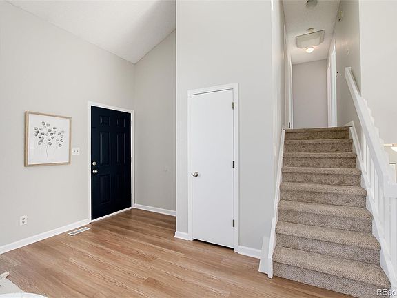 This lovely move-in ready home has a lot to offer for the price point! Enter through a covered front door and into a light and bright living room with vaulted ceiling and a large front window. The main level flows with brand new luxury vinyl plank flooring into the dining area, accented with a new modern light fixture. The updated kitchen boasts white cabinets, tile countertops and backsplash, a large double sink, and stainless steel appliances. The oven/stove and microwave are brand new as well! Step down into the family room with brand new carpet and a cozy gas fireplace that was recently serviced. This flows nicely into the backyard for the best of Colorado‘s indoor/outdoor living. With two patios and refreshed landscaping (and a peach tree), there is plenty of room to play, garden, and entertain. Upstairs will find a good size primary bedroom with two closets attached to a large remodeled Jack and Jill bathroom with double sinks and modern tile and fixtures. There are also two additional bedrooms on the upper level. The finished basement is a great space for a playroom, media space, office, or extra bedroom. There is also a modern and clean three-quarter bathroom. Additional features of this home include all new carpeting throughout, new or refreshed interior paint, sprinklers and drip line system, and an oversize two car garage. Enjoy walking to the nearby parks and tennis courts or a quick 20 minute drive to get to either Denver or Boulder. This well located home is ready for you to just move in!