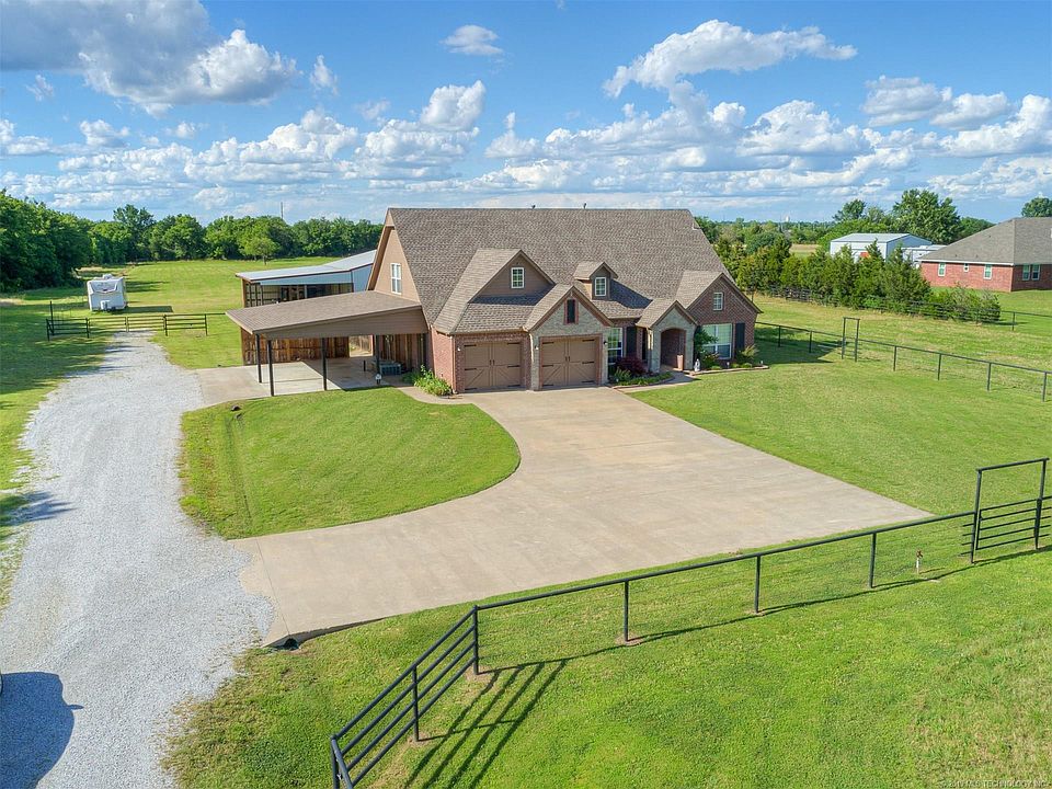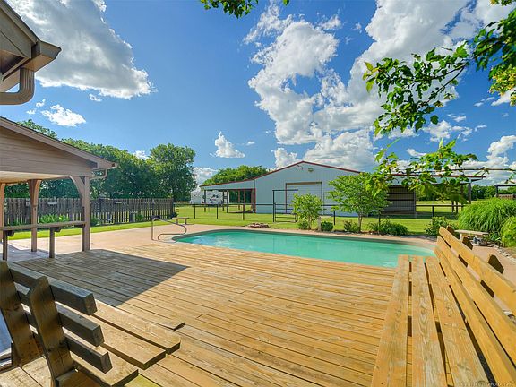 BRING YOUR HORSES! 4 BDRM+FRML+GM RM UP/2.5 BTH/3/CAR TANDEM+2 CAR CRPRT W/CSTM PIPE FENCE! 4.93 +/- ACR W/SLT WATER POOL W/DECK! BARN W/STALLS + TACK RM, RV'S, BOAT PARKING! NWR ROOF, EASY ACCESS TO HWY 75 & 169! AMAZING SCORED CONCRETE & BEAMED ACCENTS!