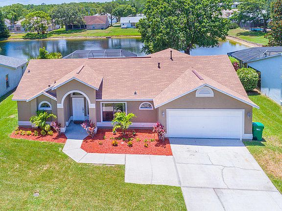 Welcome Home! This beautiful POOL home over looks the lake! The kitchen has all matching NEW STAINLESS STEAL APPLIANCES with GRANITE COUNTER TOPS and BREAKFAST BAR. The Master bath features DOUBLE VANITIES, LARGE JETTED TUB, and walk in shower. The entire house was just painted! The cathedral ceilings have skylights letting in lots of natural light. The POOL is surrounded by a SCREEN ENCLOSURE, and is a perfect spot for entertaining. NEW IRRIGATION system was just installed. Tile and laminate flooring through out the house. The laundry room is large and provides extra storage space. This beautiful home wont last long so MAKE YOUR APPOINTMENT TODAY