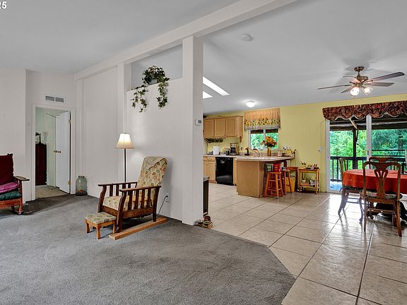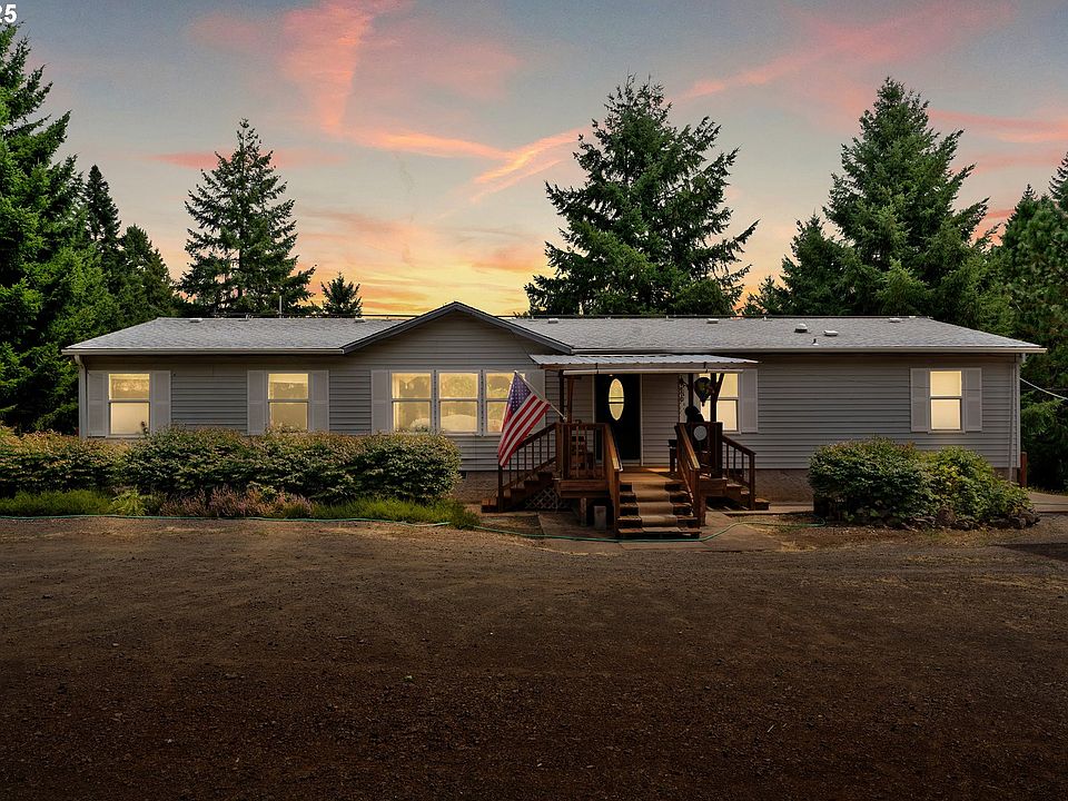 Settle into the quiet of the countryside where elk, deer, and songbirds make regular appearances. This 6.82-acre property offers a rare blend of open space, privacy, and modern comfort, with Dorena Lake only a short drive away for recreation and relaxation. The 1,782 sq. ft. Golden West home features a thoughtful split floor plan with the primary suite on one end, complete with vaulted ceiling, walk-in closet, and plenty of room to unwind. Two additional bedrooms are located on the opposite side for added privacy. At the center of the home, the kitchen provides generous counter space, a breakfast bar, and newer stainless appliances, all installed within the past year. Multiple living areas, including a large family room, create the perfect setting for both gatherings and quiet evenings at home.A 74’ x 10’ covered deck spans the length of the house, offering year-round space to enjoy morning coffee or watch the sunset. New ceiling fans have been added to every bedroom and the dining area, while the washer and dryer set and family room television are included for convenience. The 35’ x 50’ shop is a true highlight for hobbyists and car enthusiasts, equipped with a 9,000 lb. hoist. Additional amenities include an electric entry gate, 4-car carport, RV hook-up, 11,000-gallon holding tank, and sprinkler suppression system. The land is home to more than 400 redwood trees, and a picnic spot at the top of the acreage provides a peaceful place to take in the view. New roof within the last three years. Shown by appointment only. Schedule your private showing today.