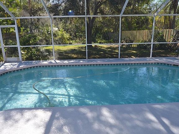 Lovely pool home with a private back yard, 3 bedrooms plus a den, 2 baths, 2 car garage in a convenient location just north of University. Built in 1993, light and bright split plan with all tile and laminate floors, vaulted ceilings and a large cage over the heated pool and lanai (electric heater as well as solar heated pool.) Silestone countertops, a pantry and storage closet in the kitchen. Lush tropical Florida back yard, partially fenced with an outbuilding create a peaceful setting for this home. So convenient to restaurants and shopping and no CDD fees here!