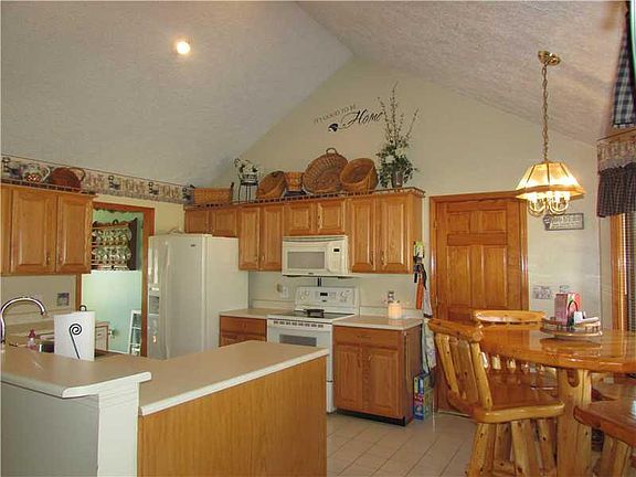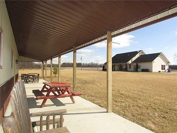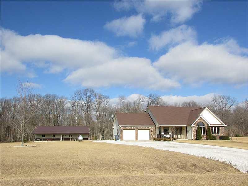 Clone Proof!! To reproduce this custom 3BR 2BA ranch w/2-c gar on 2 acres would cost far more than the owner's price. It's evident that cost took a back seat to quality in the luxurious 3/4" Hickory hardwoods, stained trim, 6-panel drs, open KT w/tons of cabinetry & appl, tray & cathedral clgs, master suite w/priv bath and 23x12 bonus room. Enjoy the huge 60x40 pole barn w/cvrd porch, full bath, office, heat & AC. Fully insulated w/16x9 gar door, 10' overhang and metal roof. "One of A Kind!"