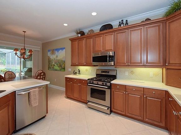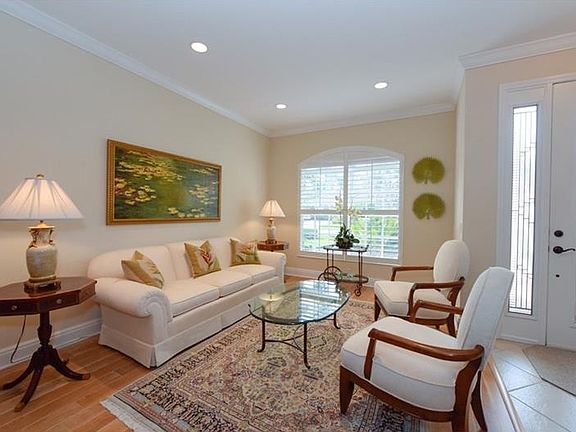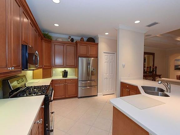 Immaculate, elegant & well designed, this gorgeous 4BR home w/3-car garage is located in the Country Club at Lakewood Ranch & surrounded by Florida Friendly Landscaping. From the moment you step in through the lead glass French door, you will notice a fine array of wonderful appointments including rich wood flooring, crown moldings, 5 1/4 baseboards, coffered ceilings in FR, DR & Master, & masterfully crafted built-ins in Dining Room & Family Room. Preparing your favorite meals is a delight from the well-appointed kitchen, featuring rich honey maple wood cabinetry, stainless appliances, pantry, appliance garage, breakfast bar & a charming dinette area that's perfect for enjoying your morning coffee. The spacious living & dining room combination invites cheerful gatherings while the office with double French doors & closet provides the setting for quiet study or can be used as the 4th bedroom. Pamper yourself in the master suite w/walk-in closet, sliders to lanai, garden tub, & clear shower enclosure. Sleek sliding doors from the family room open to generously sized pool area w/pavers, & outdoor kitchen w/refrigerator & hood, landscaped perfectly for privacy and poolside entertaining. Other features include: alarm system, newly painted floor in garage w/storage, exterior garage door, laundry sink w/upper cabinets, wood cabinets in guest bath, surround sound, exquisite light fixtures & window treatments to include plantation shutters everywhere. Hurricane shutters stored in garage, 3M on all windows.