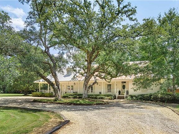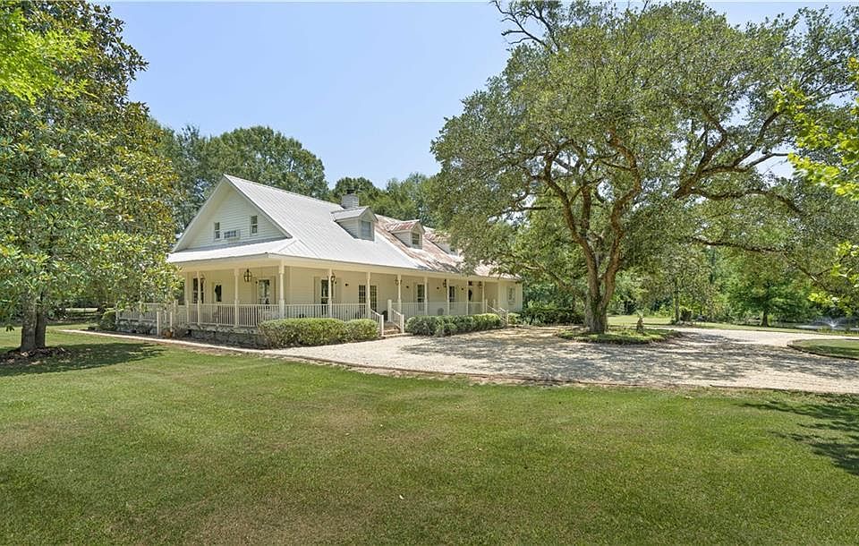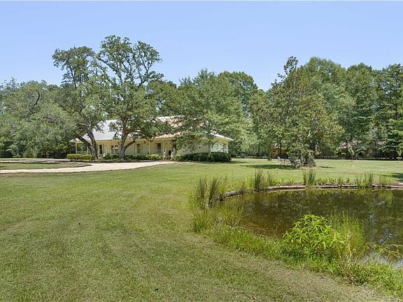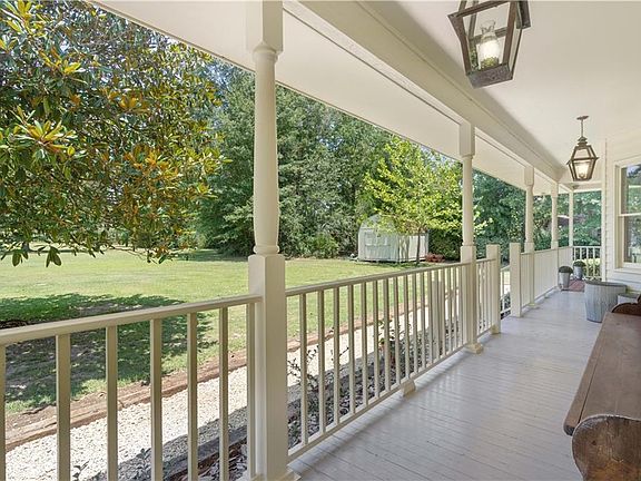 Gorgeous modern farmhouse on 5 serene acres with a pond and accessory building that would make a great workshop or garage with an accessory RV pad and 30 amp hook-up. 2 living spaces separated by a double-sided fireplace. Relax on one of the many wrap-around porches that overlook the beautiful property and pond. This Entertainers dream house has a great kitchen, dining space and open floor plan! There are 4 AC units. Many improvements and upgrades by this seller.