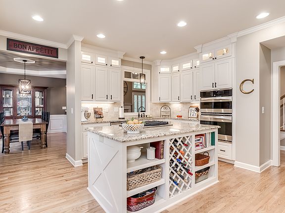 • Kitchen Features: Eat-in Kitchen, Pantry, View to Family Room, Stone Counters, Kitchen Island, Breakfast Room, Cabinets White, Wine Rack