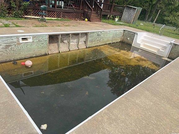From the large and inviting front porch be welcomed into a unique home! Kitchen and breakfast area are to the right with a dining space to the left. The living room opens to a covered deck. Down the hall is the primary suite, office, and half bath. Upstairs is two large bedrooms and a bathroom. Out back you will find a 30x40 shop with electric and an in-ground pool. All this sits on more than 16.5 acres! With a little TLC this could be a wonderful property.