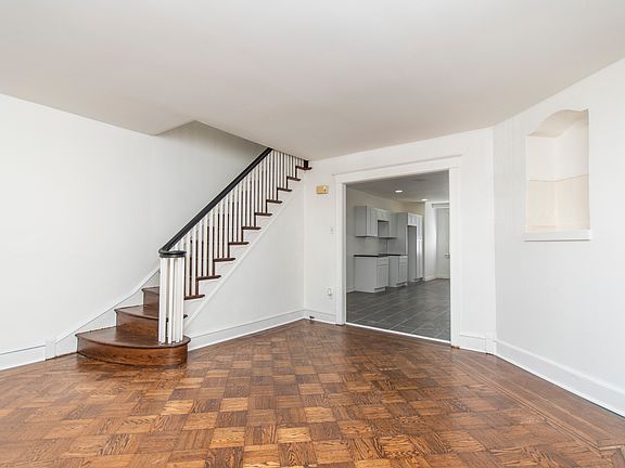 Large covered porch front home with garage and finished basement, 3 bedrooms, 2 full baths in the Cedarbrook section of Philadelphia is for sale. The home has been nicely updated. There are original hardwood floors beautifully refinished throughout. The eat-in kitchen is enormous, sun-filled, and includes the following: white shaker cabinets, polished granite countertops, gooseneck faucet with a detachable spray function, a full high-end stainless steel appliance package, and paired with modern 12x18 tile floors. The 2 full baths are bright and spacious with vanity storage and timeless subway tile. Turn the basement into a large living, entertaining space, even a 4th bedroom for guests because it is already finished with a full bath and laundry. Other features include ceiling fans, recessed lighting, gas cooking, and efficient radiator heat. This home will come alive with your decor and a few splashes of color! We are motivated to sell this home and welcome all offers. Appointments are a breeze.