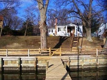 Wonderful waterfront getaway with "large" sailboat depth water. Newer private pier with multiple slips, 8000lb boatlift, and standard 6-10' depth.. Apprx 90' of shoreline on Rock Creek with easy access to the Chesapeake Bay between Baltimore and Annapolis. Move in condition 3 bedroom waterfront cottage with stone fireplace and pine floors.Plan your future dream house, as property is approved for 1700 sq ft new home.Large waterfront deck area. Great waterviews.