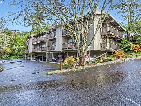 OPEN HOUSE SAT 2/17 + SUN 2/18 12-2pm! Nestled in the West Hills, this 1-bedroom condo offers a blend of modern updates throughout, surrounded by nature! Enjoy the many amenities Sylvan Heights has to offer including; outdoor pool, indoor hot tub, sauna, gym, 3 tennis courts + club room w/free wi-fi + kitchen. Step inside to find an open living space w/LVP flooring, vaulted ceilings + wood-burning fireplace. The sliding door leads you to the private deck offering tranquil views + storage space. Kitchen includes subway tile backsplash, ample storage + eating bar connecting to dining room. Shared laundry facility. Assigned covered parking space plus RV/boat storage available for additional monthly fee. Close to walking trails, shopping, NW 23rd, I-5 + so much more! HOA fee also includes sewer, water + trash. Rent cap has been met w/waiting list. FHA approved and Washington County taxes!