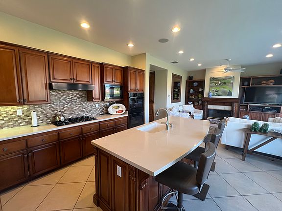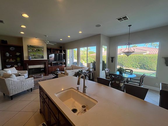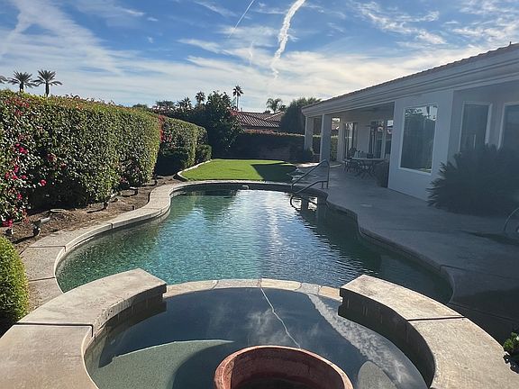 Much of the interior design was custom made and is incredible condition. Beautiful view of the fall, snowcapped mountains from the spa, pool, front yard and backyard. A custom, circular 10+ person fire pit allows family and friends enjoy views of the mountains and expanded side yard while keeping an eye on the kids, pool/spa. A cool mist system has also been installed for the warmer summer months. While in season, enjoy the lemon and grapefruit trees. Walking distance to local restaurants with live music like Vicky's, the Renaissance, Indian Wells Hotel and Hyatt Grande, among others.