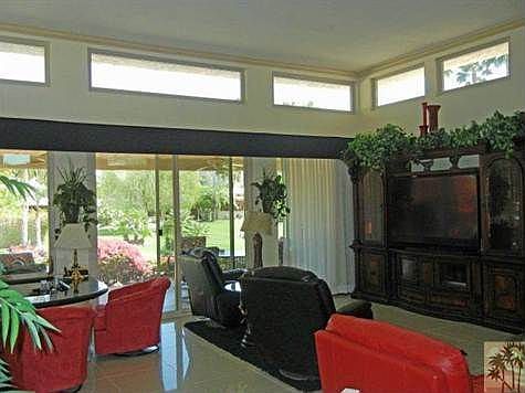 This remodeled 2,585 SF 3 bedroom, 3 bathroom Sante Fe home is located in on a 15,246 SF lot in upscale Indian Wells Country Club and is one of four homes on a large greenbelt area with community pool and spa. This home has been used as a seasonal home and is extremely clean and well maintained. Features include a wet bar, a large living with fireplace and dinning room with volume ceilings and sliding doors leading to a large patio which overlooks the community pool and greenbelt area with magnificent views of the Santa Rosa Mountains. Other features include a two car garage plus golf cart garage with epoxy flooring. In addition to 20% discounts on food and spa service, Indian Wells Residents can golf at The Indian Wells Golf Resort for only $35 green fees.
