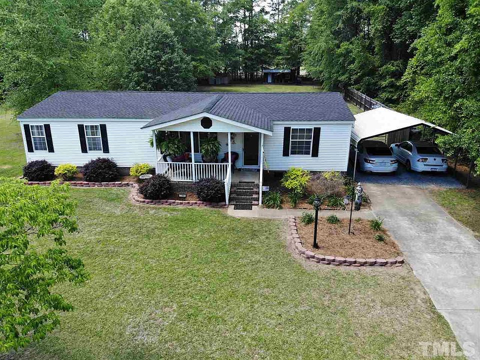 Country living at Lake Teresa near Fayetteville, Spring Lake , Lillington and Dunn! Features: Comfortable 3 bedroom 2 bath ranch, open free-flowing living/dining /kitchen, appliances stay! luxury master bathrm, upgraded porcelain sinks, laminate floors,Vertical blinds, laundry room, flood lights & more! relax on your front porch, or Barbecue on back deck w/ family and friend! 2 car shelter + detached Rec.bldg. wood floors, fireplace & A/C.! 0.83 acres! 1yr warranty! Lake access common area as Prop.owner