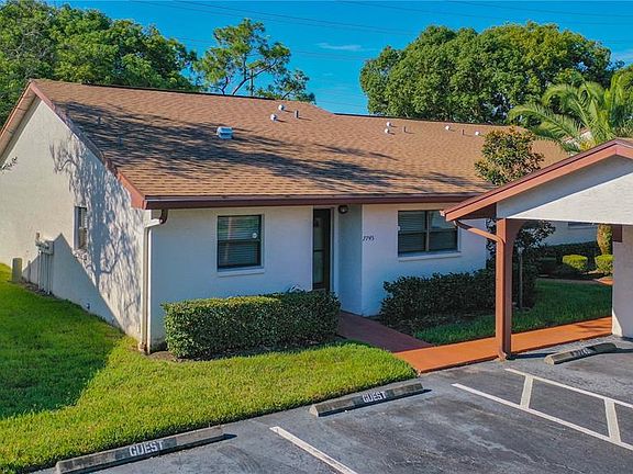 A well sought out 55+ gated community! This condo is the most desirable condos/villa floorplan in the community and hard to get. A end unit with an extra window on the side of property for extra sun light. Open floor plan with a split bedroom layout for privacy. The master bedroom has a walk in closet & a large wall closet with a good side master bathroom suite with a walk in shower. 2nd bedroom has a walk in closet and a bathroom right outside of the bedroom. Brand new wood looking ceramic tile floors throughout, new roof 2019, a/c & heat 2011, new water heater 2021, new refrigerator, & newer granite countertops in kitchen. A nice size Lanai/Florida room off the living room area ideal for enjoying the Florida weather. The assigned covered carport area also has outdoor storage closet and everything is close to the front door, easy flow from inside to outside of the property. The unit is close to clubhouse, pond, mailbox, and the community pool. Great location and close to shopping, restaurants, entertainment, medical, beaches, and airports.