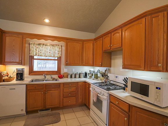 Welcome to this charming ranch-style home featuring an open floor plan with cathedral ceilings in both the living room and kitchen, giving it a bright and airy feel. The kitchen is equipped with beautiful oak cabinets and ceramic flooring, blending style and function perfectly. This 3-bedroom, 3-bathroom residence sits on a spacious private lot with a wooded backyard, providing a serene retreat. Practical features include a gutter guard system on both the front and back, a sprinkler system, and a furnace and air conditioner replaced in 2020. You'll also have peace of mind with a whole-house generator that's serviced annually, a new sump pump, and a Nova waterproofing system in the basement. Built with sturdy 2x6 exterior walls and enhanced with blown-in attic insulation, this home is both energy-efficient and resilient. Additional bonuses include solid 6-panel doors, appliances such as the refrigerator, stove, washer, and dryer, all included with the sale. Don't miss out on this beautiful home that's ready for you to make your own!