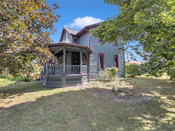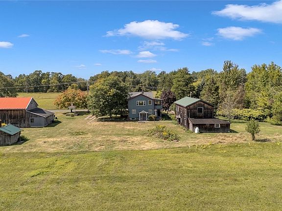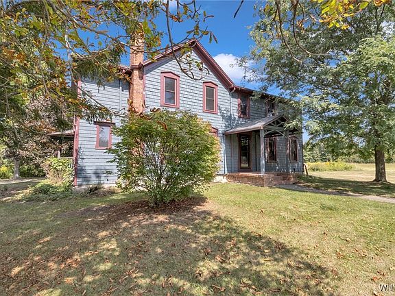 Nestled in the Clarence School District, this remarkable property spans 4.2 acres with 240’ of frontage and features five distinct structures—a rare opportunity combining history, character, and utility. The original 1911 built residence offers 3 bedrms (optional 4th), 1.5 baths, and timeless architectural details throughout. The spacious living room showcases a hammered tin ceiling, parquet floors, and oak pocket doors leading to a den complete with custom desk, stained glass window, and abundant built-in shelving. Oak hardwood floors extend into the kitchen, which features handcrafted butternut wood cabinetry with shaker-style and plate-glass doors, butcher block counters, and a serving peninsula. A half bath, first-floor laundry, and dual staircases round out the main level. Upstairs, trimmed in black walnut, a raised family room with vaulted ceiling and picture window overlooks the private rear yard, alongside an enclosed porch and 3 additional bedrms—2 with built-in desks. The primary includes a bonus walk-in closet for extra storage. The home’s exterior is equally captivating, highlighted by a custom-milled covered side porch with octagonal seating, a brick entry, cedar shake accents, replacement windows, and expertly executed roof surrounding the turret. Additional structures include a two-story garage (1988) with 1.5-car parking, a heated workshop with parquet flrs, built-ins, and storage, plus a deed-restricted 1-bedrm, 1-bath garage apartment with kitchenette. Historic outbuildings add to the property’s charm and utility, including a 1,296 SF livestock barn (1910), 880 SF machinery shed (1980) and an electric-powered blacksmithing shop. Modern updates include replacement windows and newer architectural roofing. The basement features thick poured concrete walls, storage shelving, deep freezer, refrigerator, and an upgraded electrical panel. SF based on floor plan measurements of heated space. This one-of-a-kind property is ideal for those who appreciate craftsmanship, history, and versatility. An additional 4.6-acre parcel with 450’ of frontage is also available for purchase—expanding the possibilities even further! Offers reviewed 9/18 at 10am
