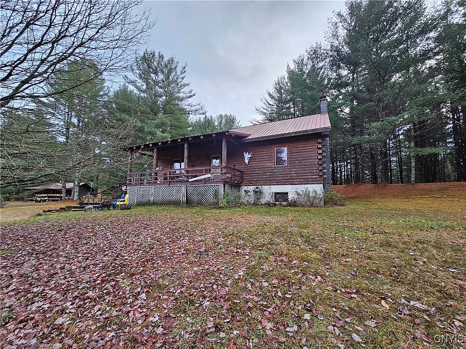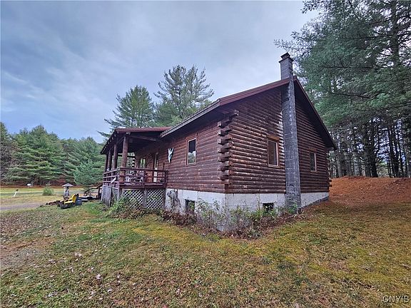 Welcome to this cozy 2 bedroom log home with cathedral ceilings and multiple sliding doors to the deck from both the living room and kitchen with the views of the surrounding woods. Enjoy the large open space of the living/dining and kitchen area, making get togethers so easy. The one stall garage/workspace is walled off from the full basement which has lots of potential for upgrading! Never worry about power outages with your stand alone generator and lastly but not least the wooded back yard with Crystal Creek trickling through your 3.2 acre lot makes for much beauty to sit and surround yourself with.