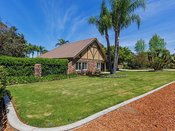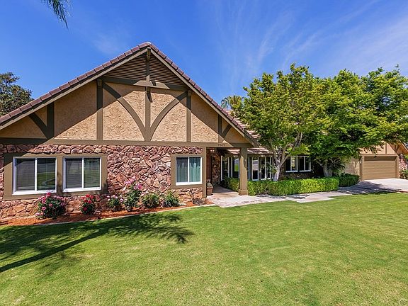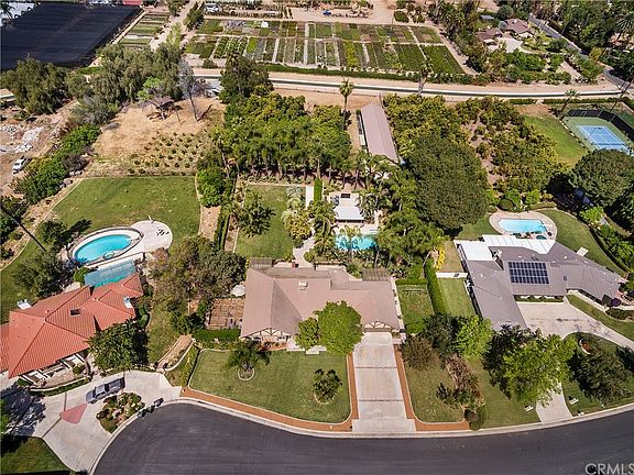 Amazing area you MUST SEE. The Riverside Greenbelt is south of Victoria Ave, known for citrus production-lush soil & custom estates & still less than 3 miles to the 91 fwy. Single level 3100+/- sq ft home has it all. Pool, Cabana,1.42 acres AND a huge 2400 sq ft custom slump stone Carriage house/barn w/ 100 foot roof line. There are (3) 18 x 24 stalls with 6 ft welded wire pipe panels, custom built from structural steel pipe & set into concrete footings, surrounded by sidewalks. Large turnout w/2 sliding drive thru gates. Concrete 54x6 foot dog run behind pens. (3) wash rack stations w/cross ties & drain under the same roof. Carriage house in finished like a home inside, concrete floor, high ceiling & nice windows. This barn even has its own concrete patio w/large built in fire pit! Private orchard with 75+ fruit trees.Avocados,Oranges,Tangerines,Minneolas,Grapefruit,Pomelos,Lem/Lime & more.+ side yard w/raised beds for a veggie garden. 5 Lrg bdrms, 3 full bths, expansive open floor plan w/soaring ceilings. Extensive windows, french doors & sidelights. Enormous kitchen w/Viking stovetop & breakfast bar. Large family rm, fireplace, wet bar, & speakers. Main dining room/living room has a floor to ceiling stone fireplace. Bdrms are huge. Master bdrm has custom leaded glass doors leading to your tropical escape. Privacy galore. You will spend hours relaxing in your pool, spa, cabana area. The backyard is EPIC in so many ways. New carpet & paint. Move in today!