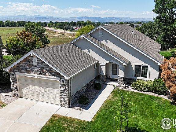 Prepare to be captivated by the allure of this stunning patio home surrounded by open space, and boxed in by breathtaking, uninterrupted panoramas of Long's Peak, the Twin Sisters, and full front range views to enjoy on your private covered & fenced in patio. This 3bd/2ba patio home is nestled at the end of a tranquil cul-de-sac in coveted Highland Meadows. Step inside and be greeted by expansive, open-concept living and dining area bathed in natural light, where soaring ceilings culminate in grandeur yet retain a cozy, inviting ambiance. A stately gas fireplace anchors the space, while NEW Milgard windows capture surrounding majestic mountain views. The kitchen is a thoughtful blend of function and conversation, featuring newer S/S appliances, a center island, pantry, breakfast bar, eat in kitchen and adjacent laundry nook-perfect for lively gatherings or quiet mornings alike.The HUGE primary suite unfolds as a tranquil retreat, boasting vaulted ceilings, direct patio access via a slider for seamless indoor-outdoor living. A generous size private en-suite bathroom offers double sink vanity, soaking tub and shower, and a generous walk-in closet. Also on main level a 2nd bedroom, and office with elegant French doors offers ideal flexibility-easily convertible into a non-conforming 3rd bedroom or a sophisticated workspace.The unfinished basement stands as a blank canvas, inviting vision: imagine tailored, expanded living quarters-recreation rooms, extra bedrooms, media space-it's yours to design. Outdoors, the private patio becomes a front-row seat to serene mornings and fiery sunsets, set against a backdrop of untouched open space-the HOA maintains the surrounding landscape for a carefree, restful lifestyle. Steps away from world class golf, new pickle ball courts and parks. Updates include a newer water heater, brand new carpet, most windows have been replaced, radon recently mitigated. Patio homes like this aren't available often, close to I-25 and NOCO cities!