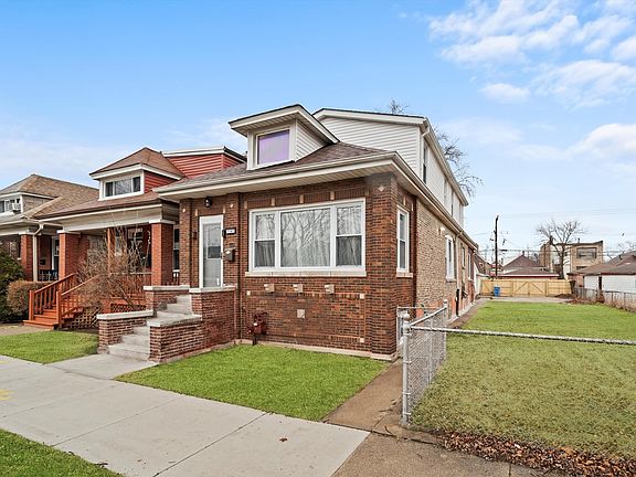 WELCOME HOME! Gorgeous, high end rehabbed 5 bed 3 bath brick Bungalow on a double lot. Walk into the warm and inviting living room with refinished hardwood flooring, freshly painted walls with crown molding and recessed lighting. Plenty of natural sunlight coming in the windows from second lot open next door. The spacious open floor plan of the living/dining room just off the BRAND NEW kitchen allows for the ultimate focal point of the home! Enjoy the white shaker cabinetry with black onyx hardware, quartz countertops and mosaic tile backsplash. Check out the centerpiece of the kitchen, a breakfast bar peninsula for sharing meals or entertaining. Brand new stainless steel appliances to finish off the look. There are 2 good sized bedrooms, one staged as an office, on the 1st floor and a full bath with all the modern finishes. Enjoy coffee in the morning in the sunroom just off the kitchen in the back of the house. The second floor boasts 2 beautiful high ceiling bedrooms with brand new carpeting and a full bath with gorgeous tilework and finishes. Head down to the fully finished basement with brand new tile flooring, recessed lighting and extreme spaces for additional entertaining. Including a 5th bedroom, separate storage & laundry rooms, and another full bath with meticulous tilework and a modern vanity. All 3 bathrooms have LED mirrors in them. Don't forget to check out the ultimate fully fenced in backyard attached to the open lot next door with 2 car detached garage with an unfinished 2nd floor. Call and schedule your private tour today! This is TRULY A MUST SEE!