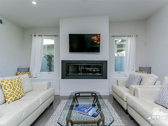 Seasonal Lease. Custom-built Mid-Century Modern home in Indian Wells Village with designer and energy efficient features. Completed in March 2015. 20-foot custom made pocket doors open the entire living room to the covered patio and community pool. White marble countertops and waterfall island gives the chef in the house plenty of prep space. Eco efficient features include polished concrete flooring, classic desert butterfly 'cool' roof, high energy efficient windows, sustainable desert landscaping with new drip irrigation system, tankless water heater, indoor and outdoor energy efficient lighting. Designer finishes include vessel sinks in bathrooms, french and custom bi-fold doors in bedrooms, stainless steel fixtures, custom 4 ft wide front pivot door, and alarm system. Association pool cabana has new paint, and HOA just installed new landscaping, and pool equipment. Just a short walk to Indian Wells Tennis Gardens. LEASED through April 30, 2017