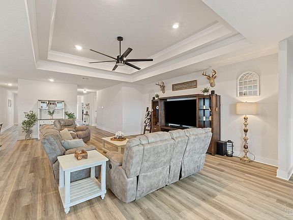 Sellers are ready to sell and open to reasonable offers! This stunning, almost new 3,113 square foot home has all the space you need and then some! This home boasts five bedrooms, three bathrooms, an office and a formal dining room, all in an open layout. Trey ceilings, granite countertops, and LVP flooring in the living areas make this home feel luxurious, while being so warm and inviting. The kitchen provides ample counter and cabinet space, plus a large walk-in pantry. The primary bedroom is spacious with an en-suite bathroom which offers a double vanity, separate shower and tub, and a walk-in closet. Still want more space? This home is situated on an acre lot! The lot is fully fenced with a 30'x40'x16' high quality pole barn. Covered porches in both the front and back so you can enjoy your expansive yard in comfort. Located on a quiet street convenient to everything you need, including shopping, dining, and the Escambia River.