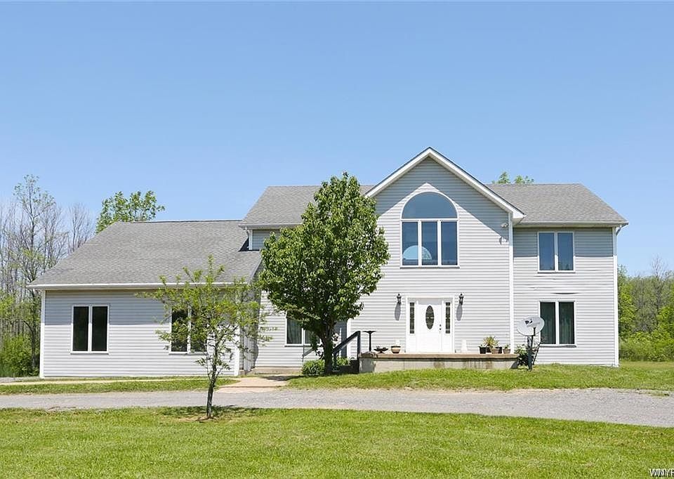 This huge 4 bdrm 2 bath vinyl sided colonial needs TLC. Home features 3,924 sq feet on 6.75 wooded acres for hunting, hiking, snowmobiling. Extremely large kitchen w/wood cabinets, breakfast bar & separate eating area w/sliding glass door to deck. Formal dining rm w/bow window, den, family rm boasts vaulted ceiling & 2 skylights. Big hallway on 2nd floor, sky light, 2 nooks & sliding glass dr. Loft/bedroom. 1st & 2nd floor laundry, recessed lights, half moon windows. Full basement 8ft ceiling, walk-out bilco doors, 5 zone heat, front porch, 2.5 attached garage-finished, circular driveway.