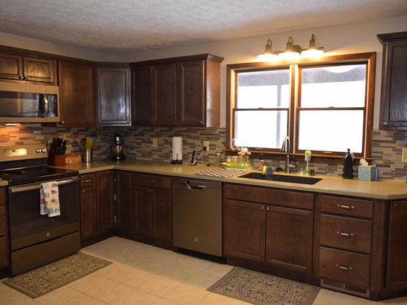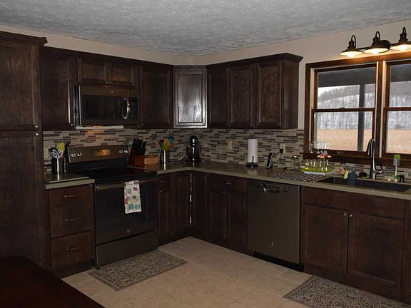 This kitchen in this Licking Valley school districit Ranch home would make Joanna Gaines smile. Brand new cabinets new Stainless Steel appliances, solid surface countertops and large tile flooring. This is a must see for all the updates these sellers has made to this wonderful functional home. The Large Living Room has beautiful hardwood floors with beauitful views out the large picture window. Large Covered porch for outdoor enjoyment. The lower level has a egress window so new buyers can add a bedroom if they desire. Large garage