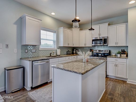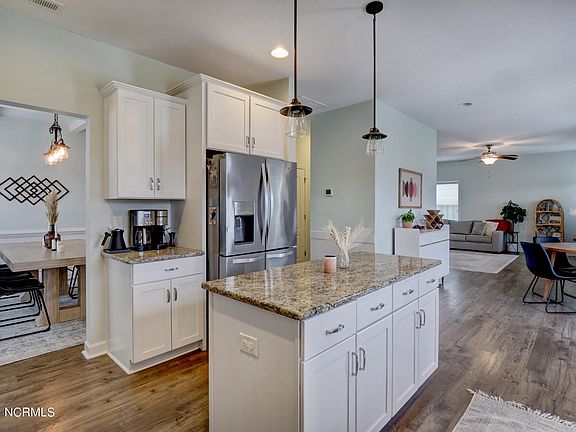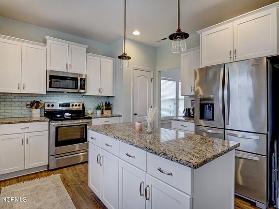 Located in the secluded yet convenient Ogden neighborhood of Gable Run, this beautiful 4 bedroom, 2.5 bathroom home features 2450 s/f with many thoughtful upgrades throughout! Built in 2017, this 2 story home showcases a covered front porch with stacked stone, a grand foyer, office with barn door, formal dining room with wainscoting & coffered ceiling, and a large kitchen with granite countertops, center island, custom tile backsplash, and stainless steel appliances with new refrigerator included. The spacious living room features lots of natural night and a gas fireplace. Contemporary low-maintenance laminate flooring stretches through all living spaces. Upstairs, you'll find a master suite with separate vanities, huge walk-in closet, shower and separate soaking tub. Three additional bedrooms, upstairs laundry and bath complete the second floor. You'll love the private, fully fenced backyard featuring a covered extended patio with swing and a storage shed. Freshly painted throughout, this great property is in move-in condition and offers low-maintenance living in an ideal location. No City taxes! Gable Run backs up to a horse farm yet is near great shopping, restaurants, parks, schools, Mayfaire and Wrightsville Beach. Call today to book your appointment before it's gone!
