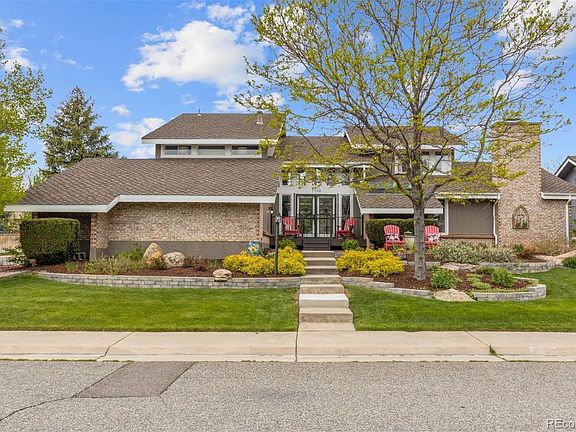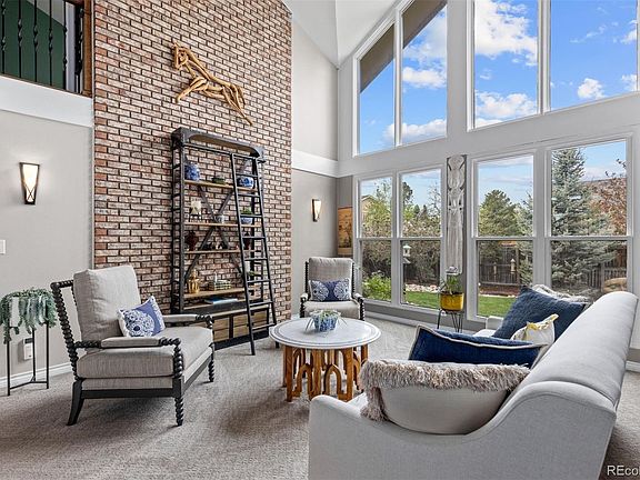 This remarkable two-story 4 beds, 4baths home is in the esteemed Heritage Greens Subdivision. Upon entry, grand ceiling-to-floor windows flood the interior with natural light, complemented by exposed wood beams and vaulted ceiling with large fan. An accent brick wall infuses the living area with character and warmth. The main level boasts a luxurious primary bedroom suite complete with a wood-burning fireplace, walk-in closet with a custom organizer system, and a lavish 5-piece primary bath. Pampering amenities include a light-up mirror, double sinks with leather granite countertops, and a large skylight enhances the spa-like ambiance of the bathroom. Entertaining is a delight in the expansive dining room and family room, featuring hardwood floors, another wood-burning fireplace, and a wine refrigerator. The chef's kitchen is a culinary haven, boasting slab granite countertops, stainless steel appliances, abundant cabinets with pull-out drawers, cooktop, two ovens, refrigerator, microwave, recessed lighting, and skylights. A cozy eating area with a coffee bar or buffet adds to the charm. Ascend on to the beautiful wood stairs with a wrought-iron staircase to discover three additional bedrooms and a loft area ideal for an office or study. The basement offers additional living space with a family/rec room for entertainment. Outside, the meticulously maintained exterior with newly painted exterior front and backyards professionally landscaped featuring a beautiful stone walkway and patio leading to a relaxing hot tub included for your enjoyment. Convenience with the main level laundry room and access to the 2-car attached garage, equipped with an EV outlet for electric vehicles. Walking distance to the pool & club house offers a variety of social events throughout the year! With quick access to C-470, I-25, DTC, and DIA, this home offers unmatched convenience. Don't miss out on the opportunity to make this your forever home!