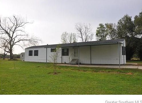 Very nice 16 x 80 mobile home set up on concrete slab with 6 acres m/l. New carpet, large living room with fresh paint. Kitchen has tons of cabinets. Master bedroom has walk-in closet, double vanity in master bath and large soaking tub, vaulted ceilings. Central air and heat, large covered carport, 2 storage buildings, Bell City schools! Not in a flood zone, Tract is a 277 x 1300 with an acre sold out of the northwest side of property. Sold as is. Previous seller reserved mineral rights.