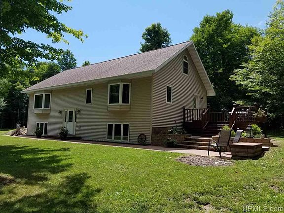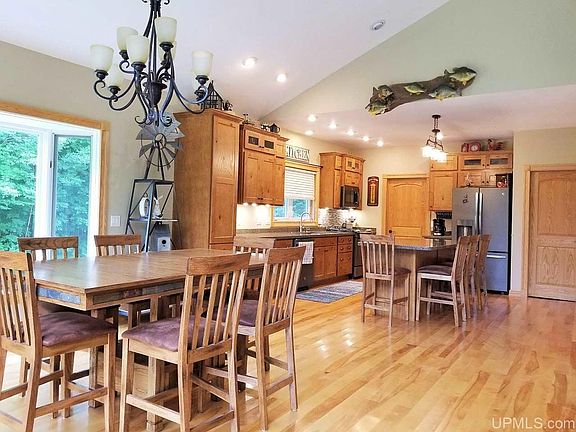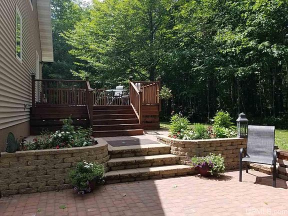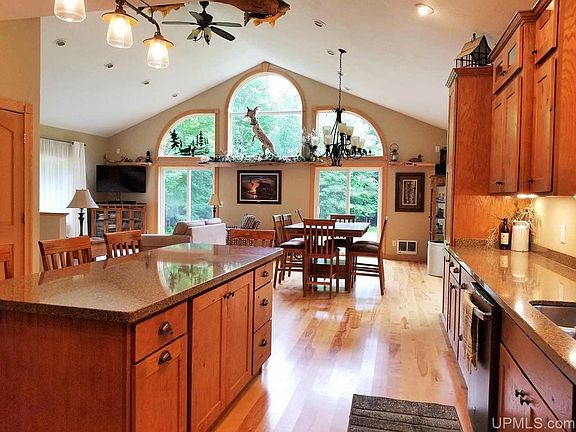 High Quality best describes this like new home, built in 2008! The custom kitchen, designed and installed in 2012, features custom cabinetry with self closing drawers, Quartz counters, & GE appliances. Birch hardwood flooring flows through the open concept living space with cathedral ceilings and top to bottom windows. Main floor bedroom, bathroom, and laundry finish out the 1st floor. Heading to the lower level there are 2 additional bedrooms, a full bath, and plenty of room to have a family gathering spot or office/den. Enjoy the peaceful setting from the deck or patio area. Settled on 5 acres with privacy off the main road. Close to town convenience but with township taxes & well/septic for a reasonable buy!