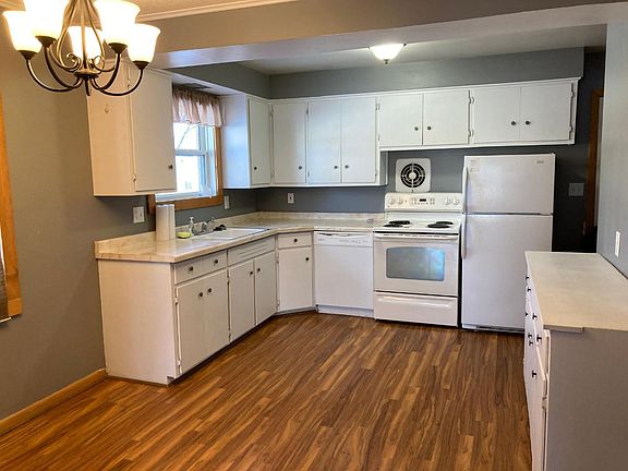 This cozy, brick ranch home is situated on a corner lot. The main floor rooms have been painted in modern colors and the laminate floor in the kitchen/dining area really sets off the white kitchen cabinets. The spacious living room features a brick, wood burning fireplace. Also on the first floor are a full bath and two bedrooms. The full lower level features a 3/4 bath, utility hookups and a spacious room with a second fireplace. The home has natural gas heat and a one-car attached garage. This home is move-in ready!